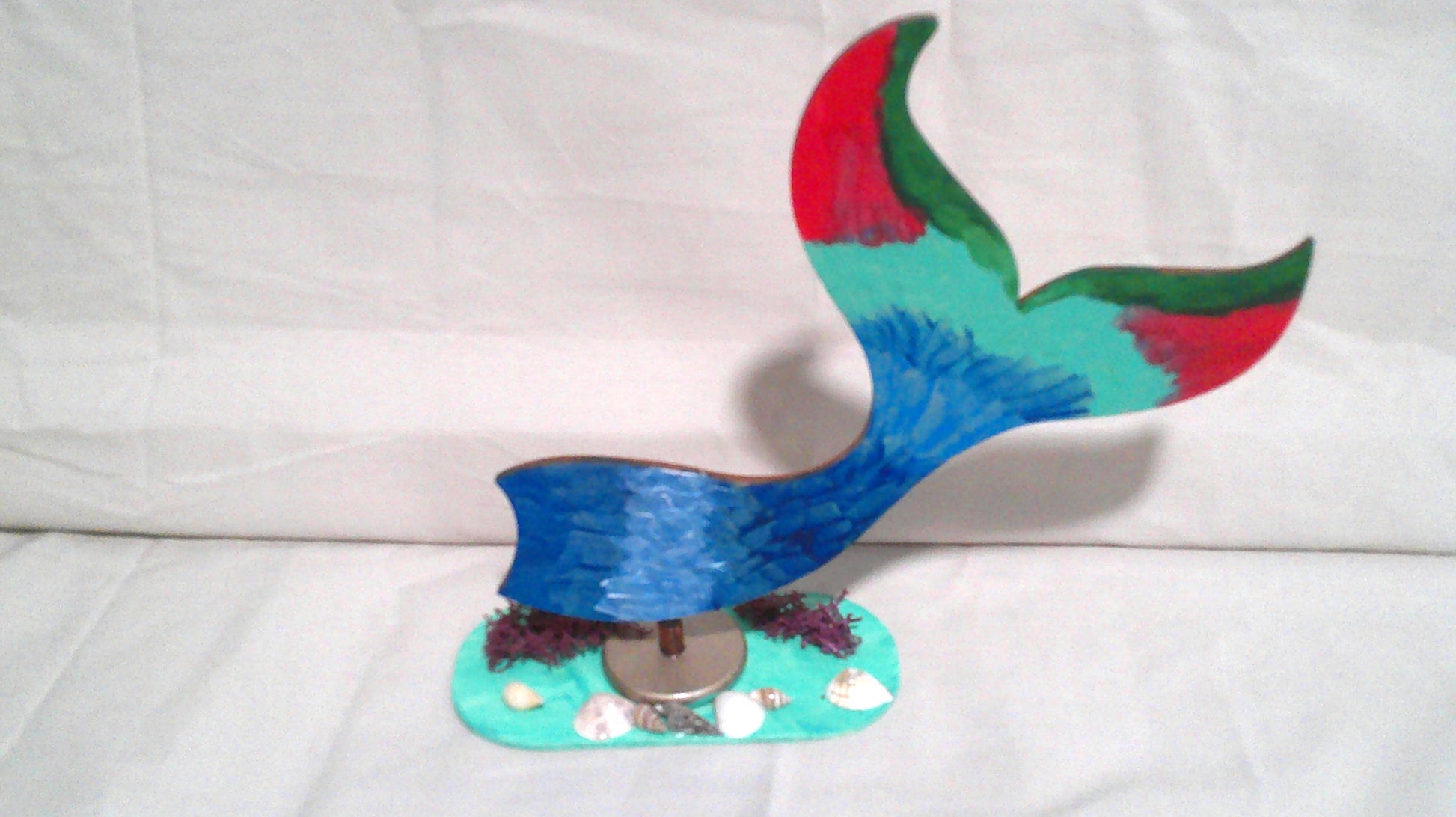 Lovely hand painted mermaid tail thats about 7" in height will look great on any table or shelf in any mermaid lovers home for a nautical look!